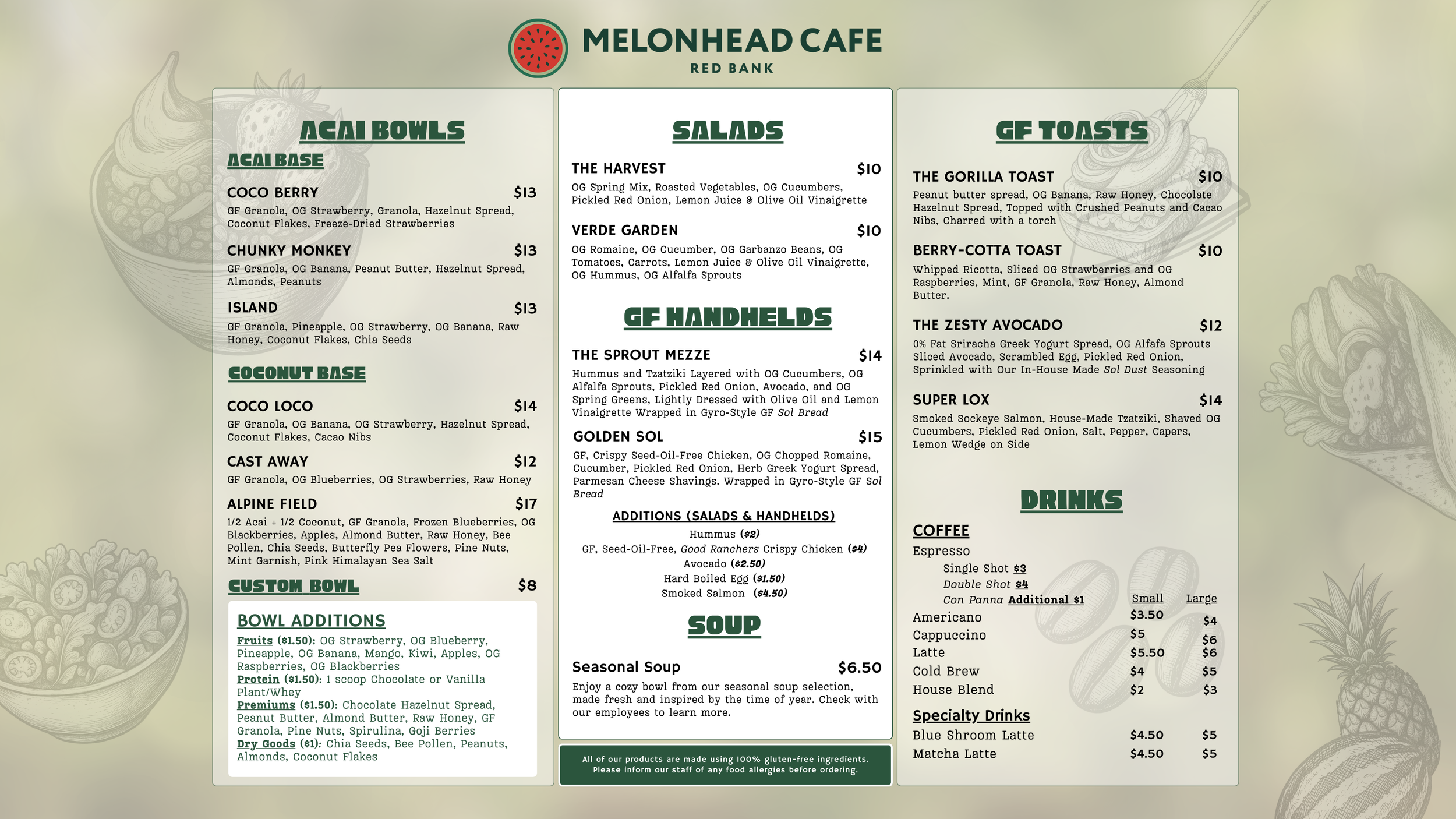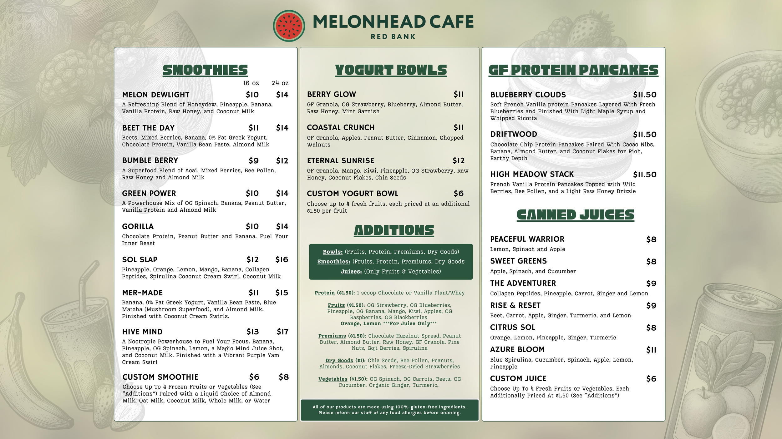 The Melonhead menu consists of only the best, natural foods to fuel your day. We understand the benefits of organic vegetation go far beyond the simple practices in which plants are grown. Benefits include more nutrients, avoiding chemicals, no GMOs, preservation of our natural ecosystems, supporting farming directly, and best of all: BETTER TASTE. The decision is a no-brainer to supply our customers with the best tasting and best quality products available.